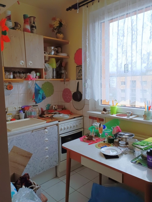 Při otevření vstupních dveří do bytu se nacházíte v předsíni s koupelnou, kde je instalována rohová vana. Z předsíně je vstup do kuchyně a obývacího pokoje.